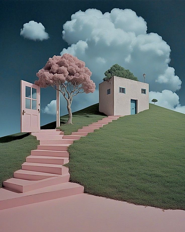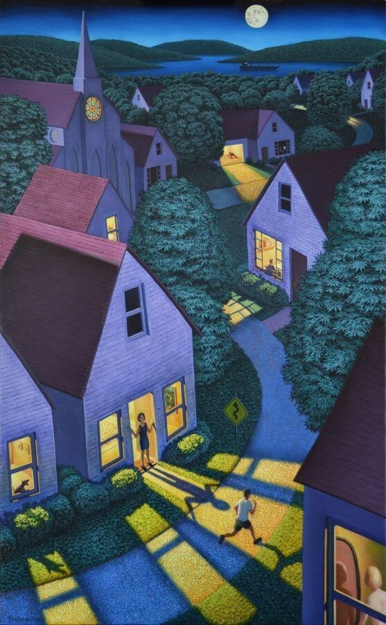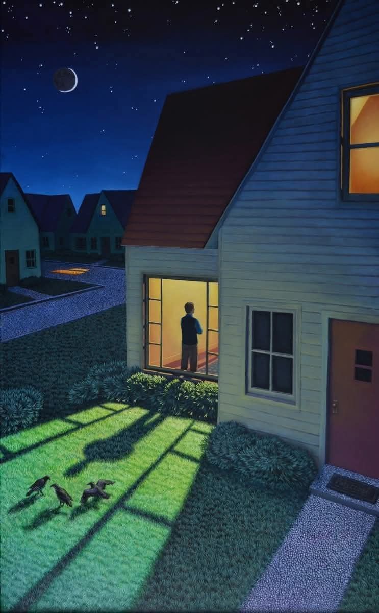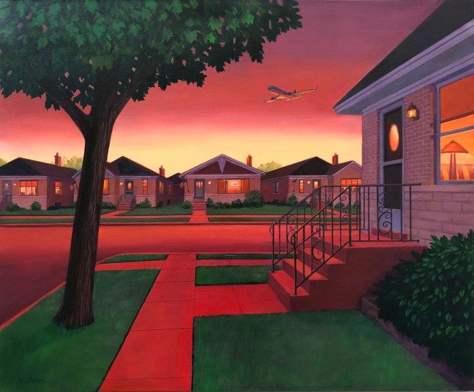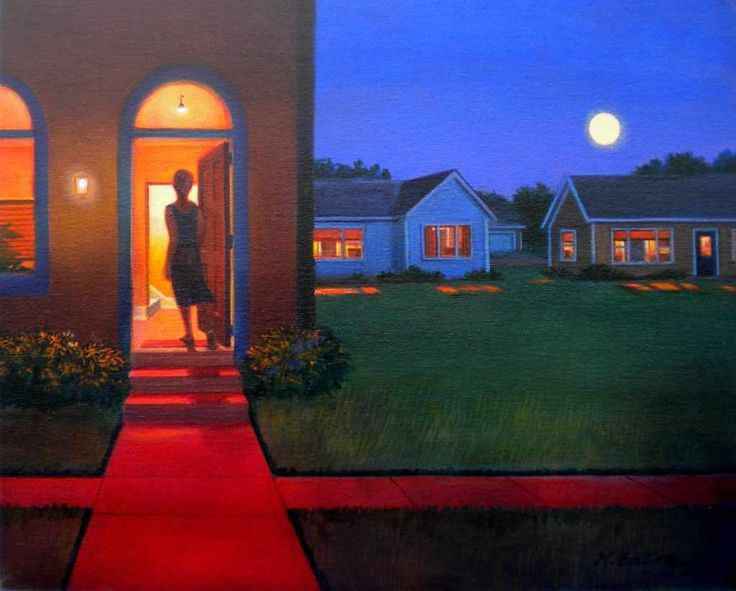 These suburbs are like a distant memory. Sort of familiar, sort of surreal, tainted with warm or cool light. Many of the paintings are done by Kathleen Eaton. Some are modified by AI and some sources are unknown.